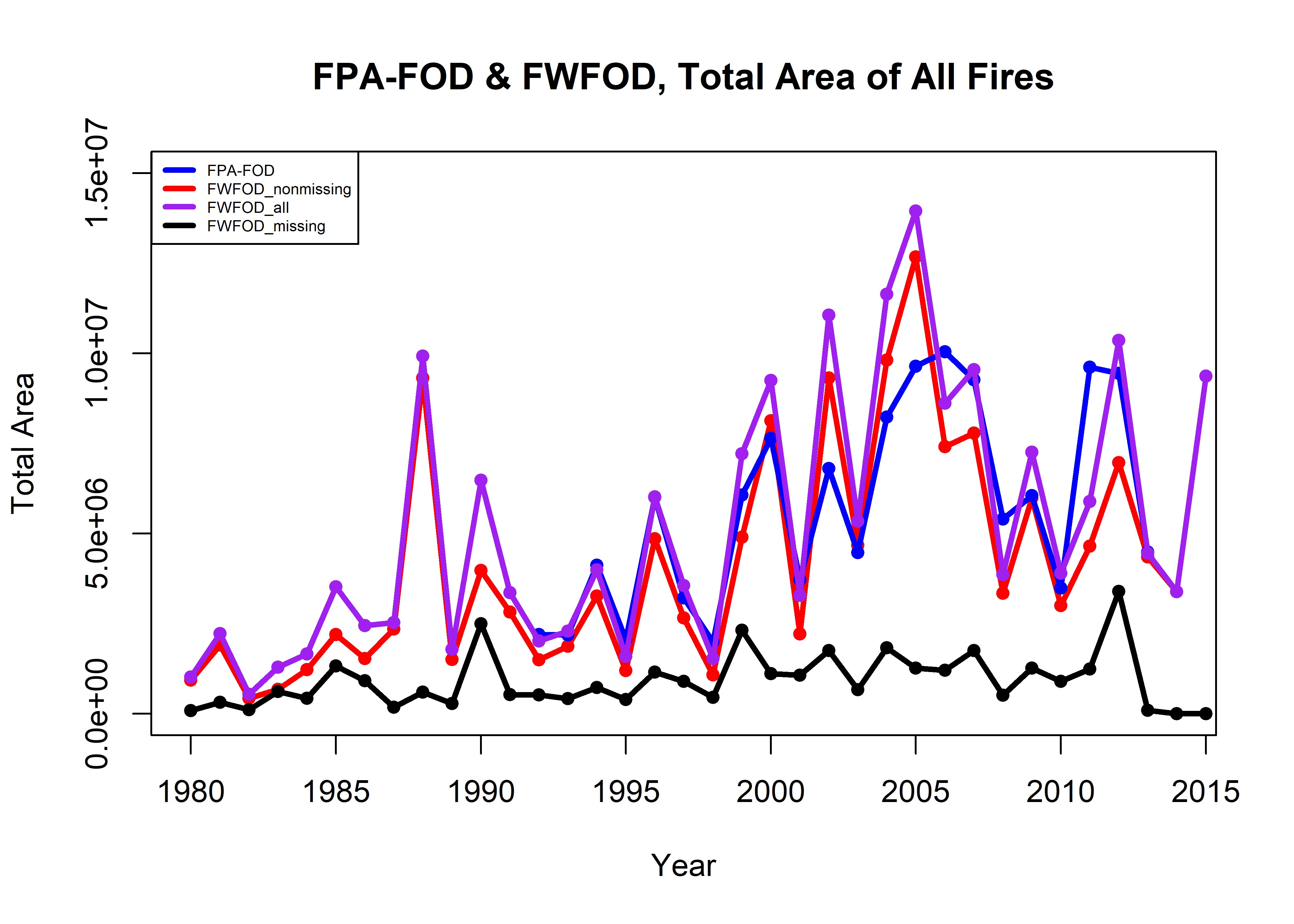 legend("bottomleft", legend=c("FPA-FOD","FWFOD", "FWFOD_missing"), lwd=3, cex=0.5, col=c("blue","red","black"))