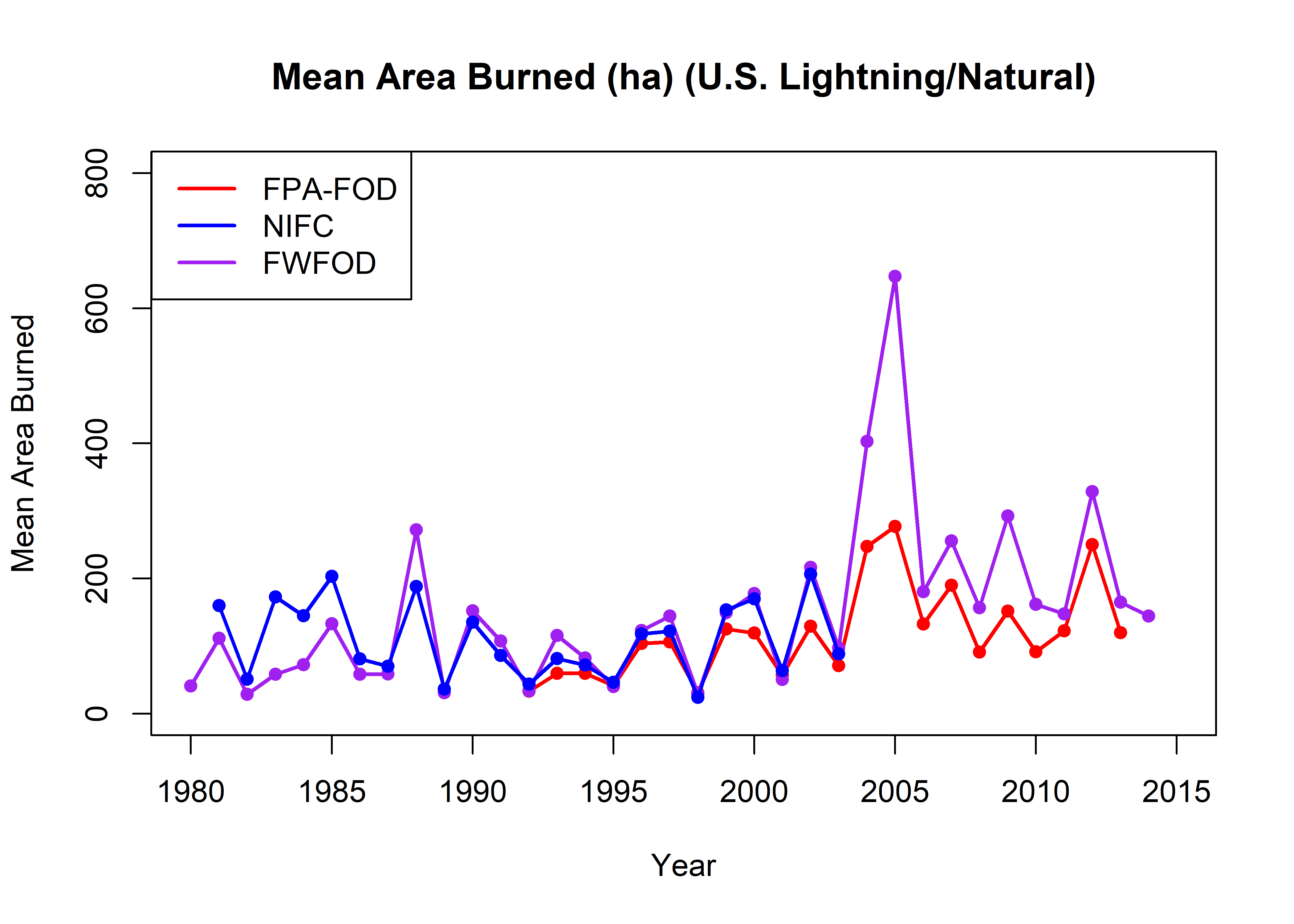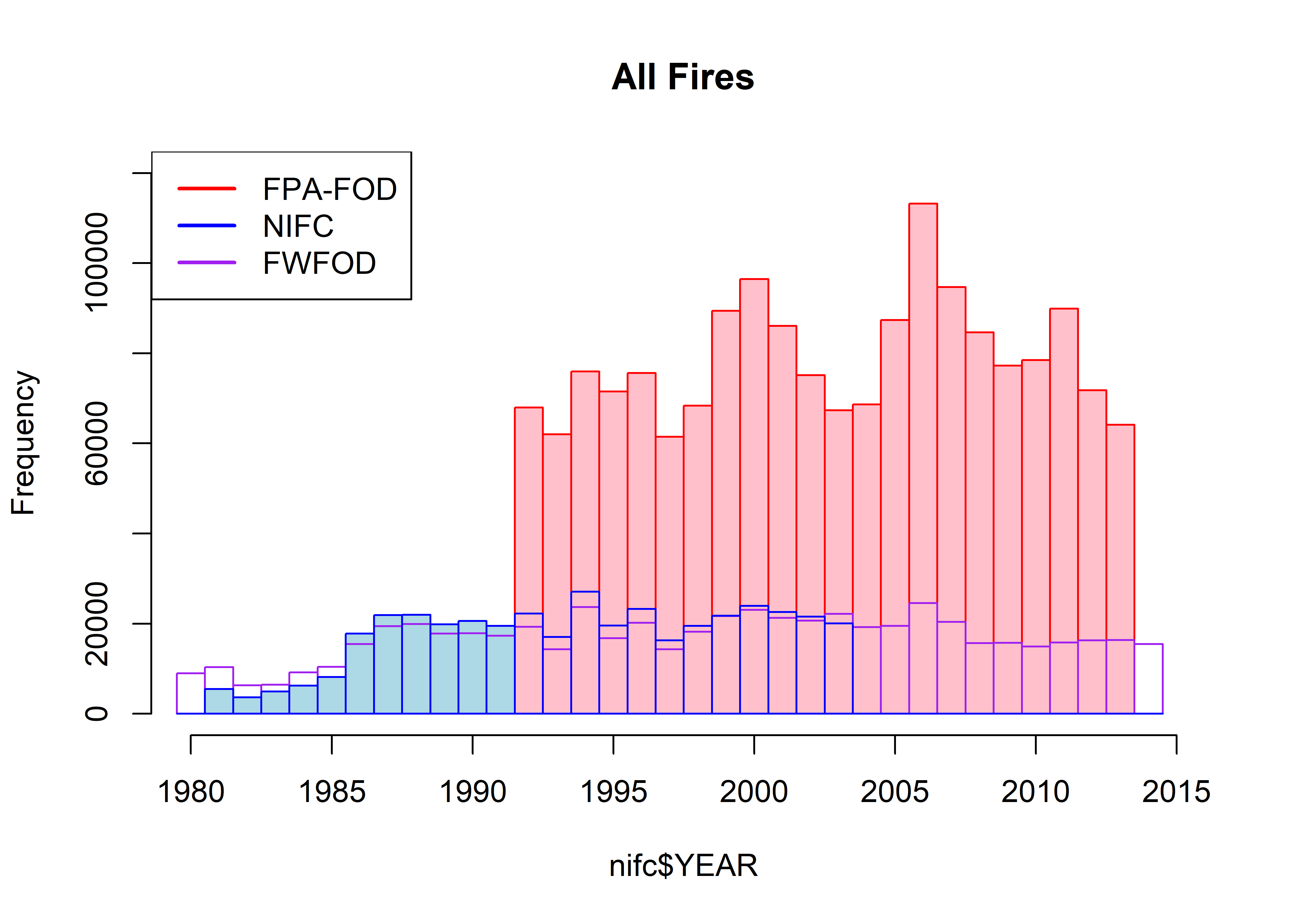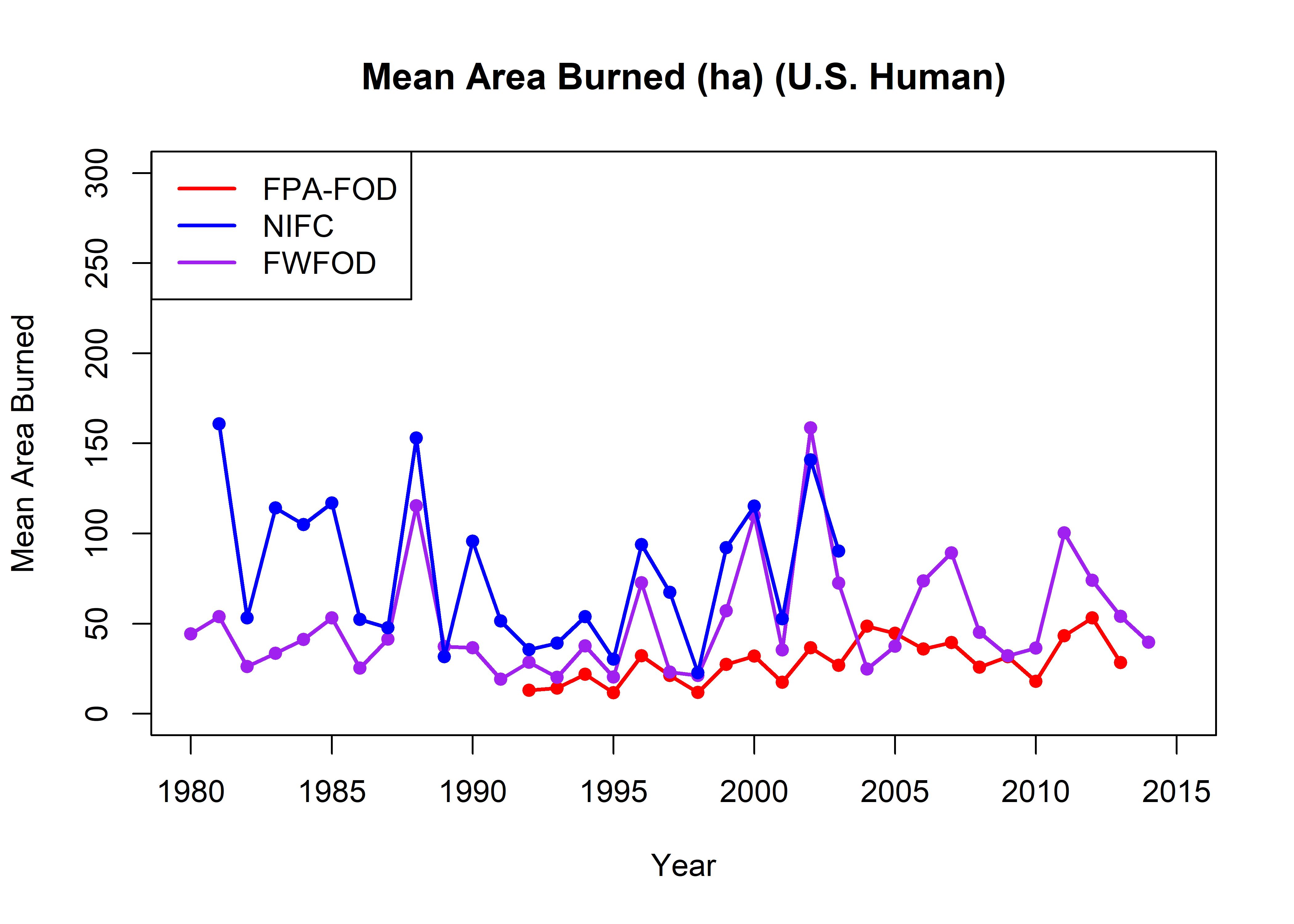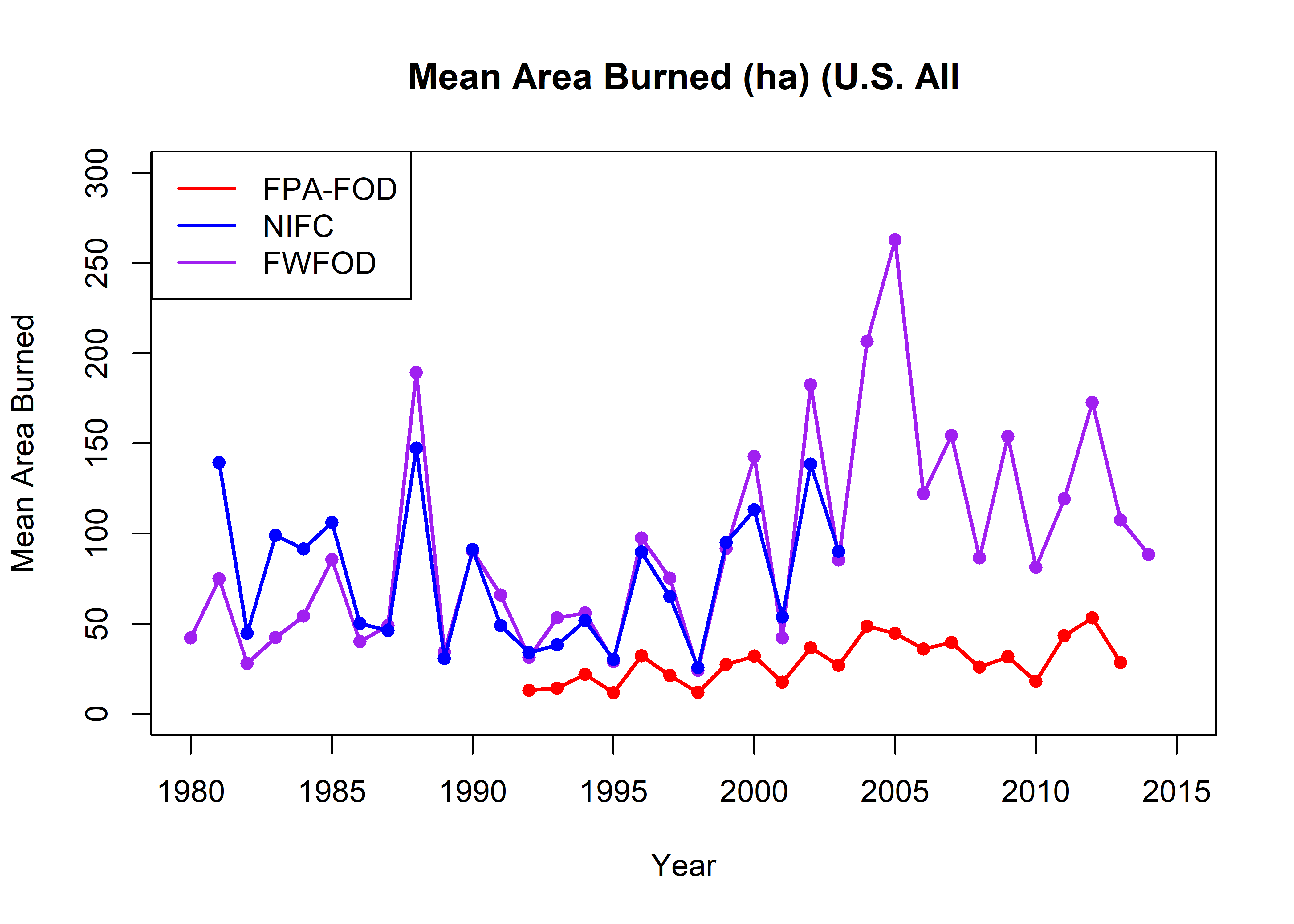 names(all_totalarea) <- c("Year", "fpafod_totalarea", "nifc_totalarea", "fwfod_totalarea")
