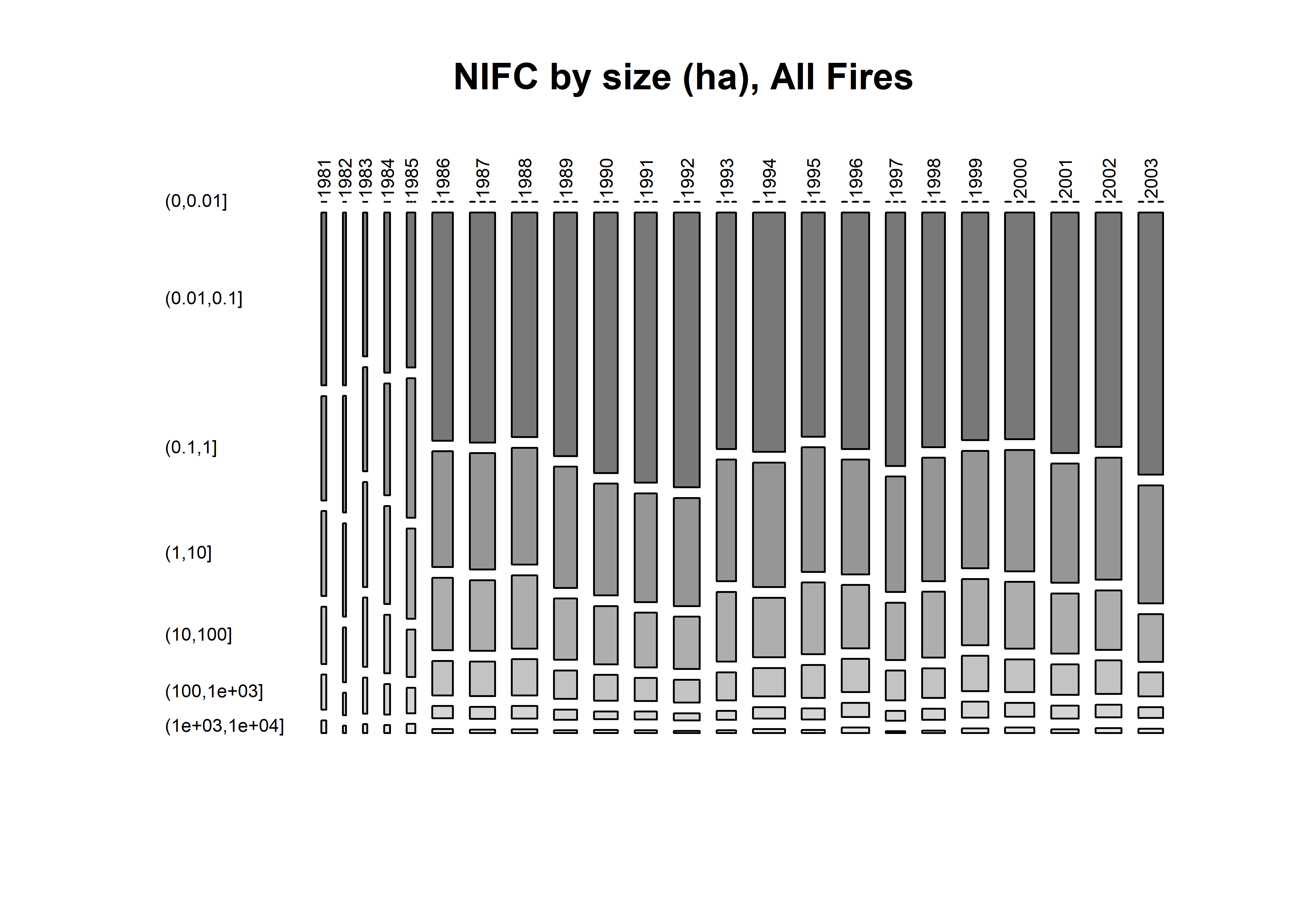 nifc_num <- hist(nifc$YEAR, breaks=seq(1979.5,2015.5, by=1), plot = FALSE)