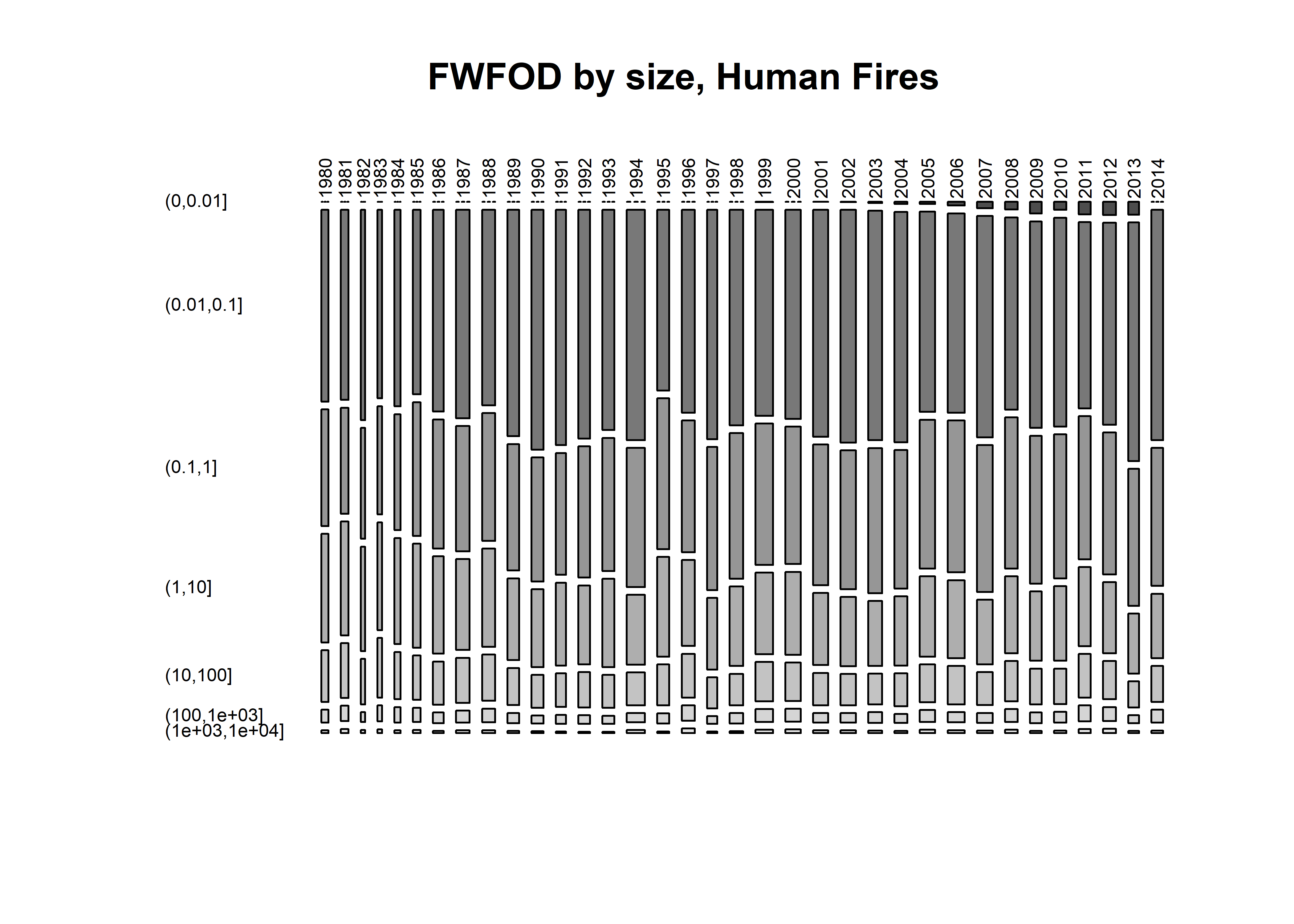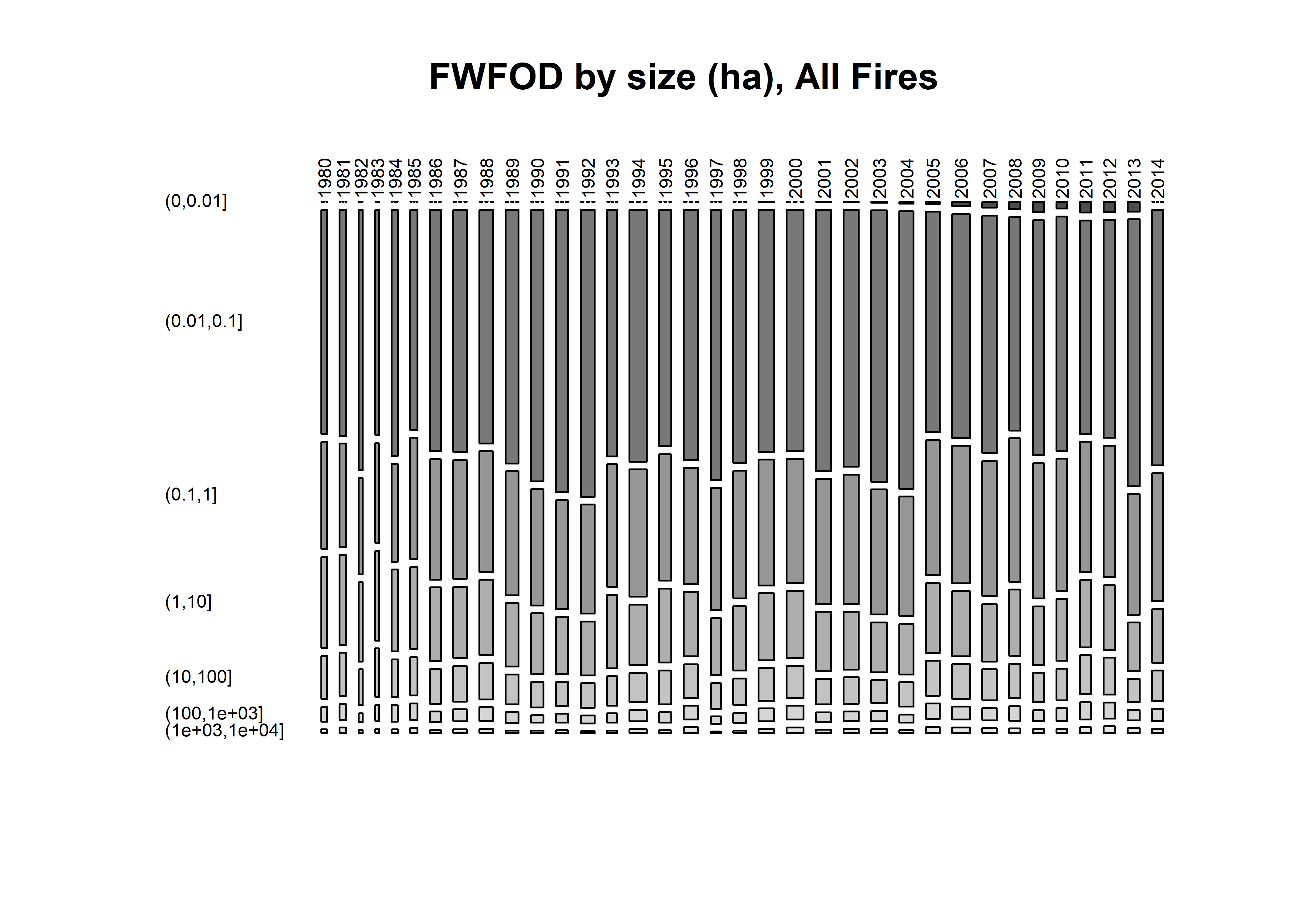 fwfod_num <- hist(fwfod$startyear, breaks=seq(1979.5,2015.5,by=1), plot = FALSE)